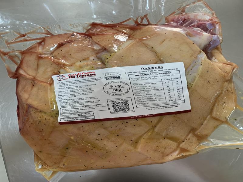Corte do Pernil Dianteiro em formato arredondado e com a pele com desenho em losangos lembrando a tortuguita.
